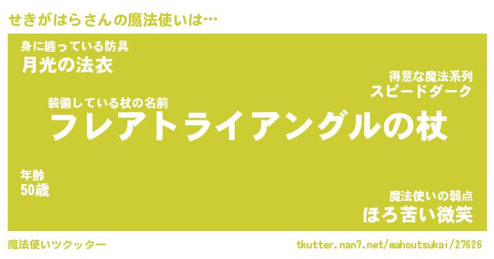 | ファンタジー風あだ名 | 『セキフェル』『エターナルセキガハラー』 |