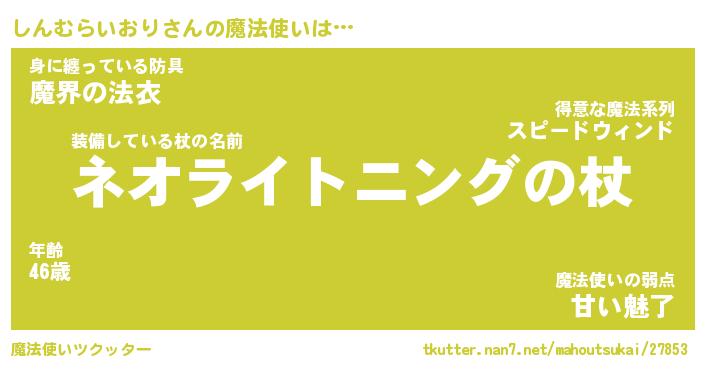 | 男性向けラノベタイトル風あだ名 | 『しんむらいおりの憂鬱』 |