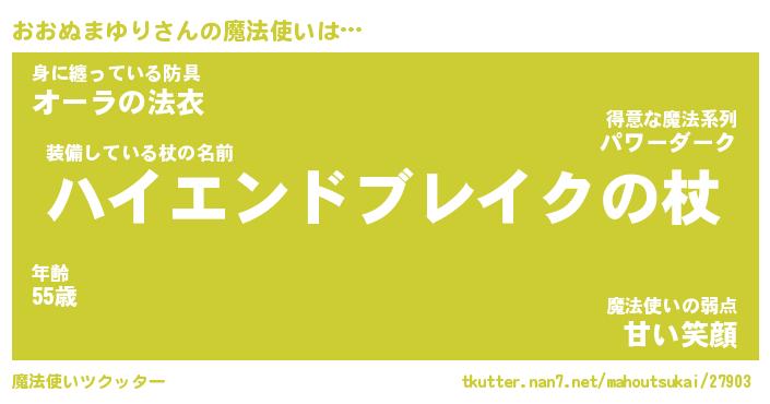 | 男性向けラノベタイトル風あだ名 | 『オオヌマユリアートオンライン』 |