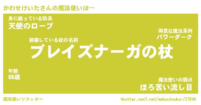 | ファンタジー風あだ名 | 『カワフェル』『ファントムカワス』 |