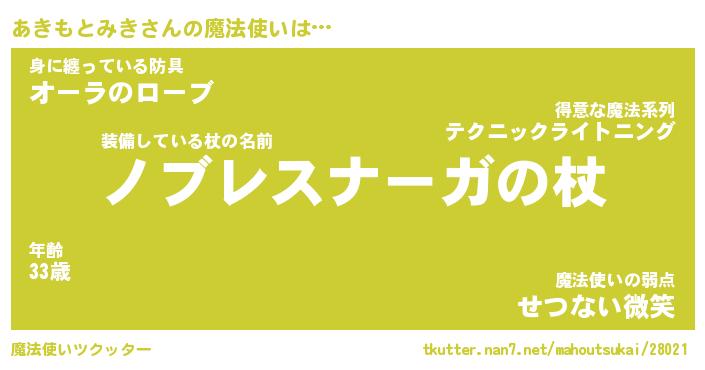 | 男性向けラノベタイトル風あだ名 | 『アキモトミキアートオンライン』 |