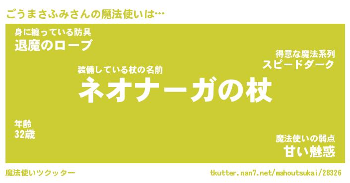| ツイッター | ごうまさふみさんのツイッターID『masyumaro_kun』 |