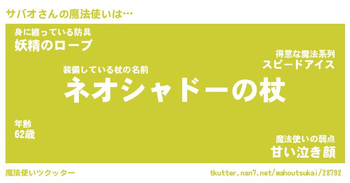 | ファンタジー風あだ名 | 『サバフェル』『エターナルサバオー』 |