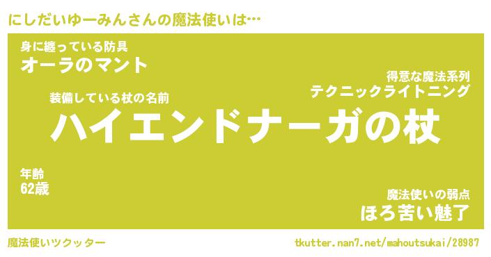 | 肩書あだ名 | 『にしだいゆーみん御曹司』 |