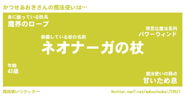 | 男性向けラノベタイトル風あだ名 | 『カツセアオキアートオンライン』 |