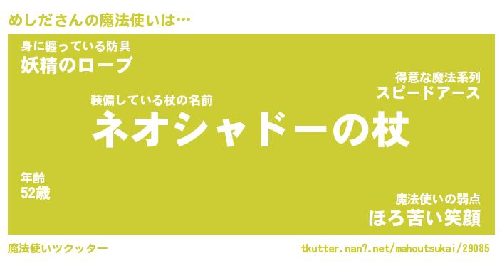 | 男性向けラノベタイトル風あだ名 | 『めしだの憂鬱』 |