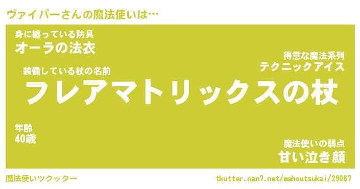| ファンタジー風あだ名 | 『ヴァフェル』『エターナルヴァイパーー』 |