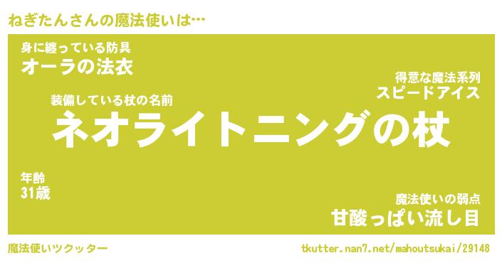 | ファンタジー風あだ名 | 『ネギフェル』『エターナルネギタンー』 |