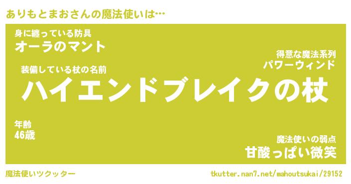 | 男性向けラノベタイトル風あだ名 | 『アリモトマオアートオンライン』 |