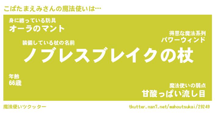 | 伝説のあだ名 | 『封印されし傭兵こばたまえみ』 |