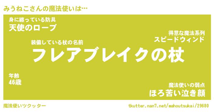 | ヒーロー風カッコイイあだ名 | 『スーパーミウネコ』『幻影騎士ミウ』 |