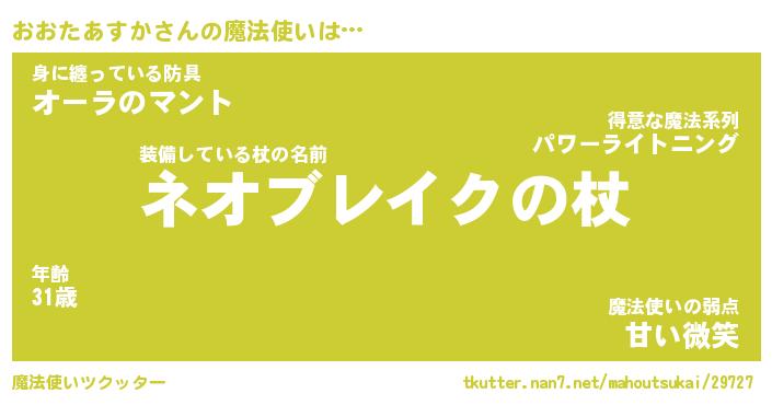 | 女子向けラノベタイトル風あだ名 | 『おおたあすか姫と円卓の騎士』 |