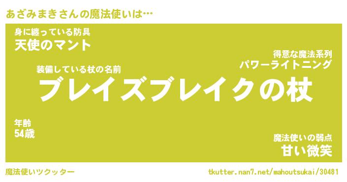 | ファンタジー風あだ名 | 『アザフェル』『エターナルアザミマキー』 |