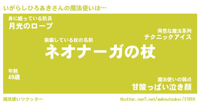 | 男性向けラノベタイトル風あだ名 | 『イガラシヒロアキアートオンライン』 |