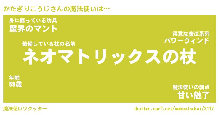 | 肩書あだ名 | 『かたぎりこうじ社長』 |