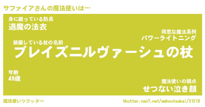 | ファンタジー風あだ名 | 『サフフェル』『エターナルサファイアー』 |