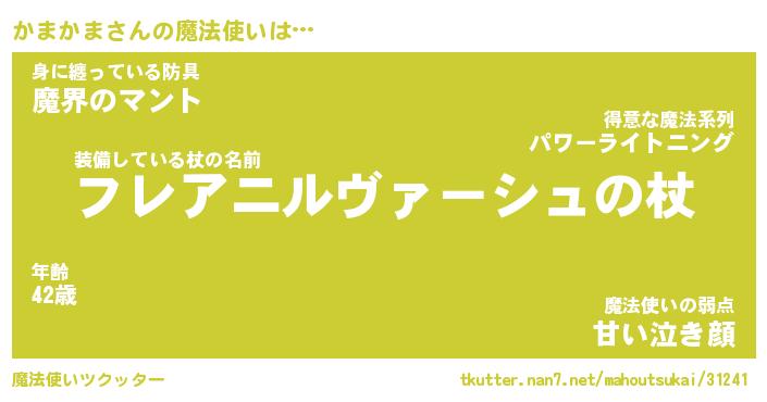 | ファンタジー風あだ名 | 『カマフェル』『エターナルカマカマー』 |