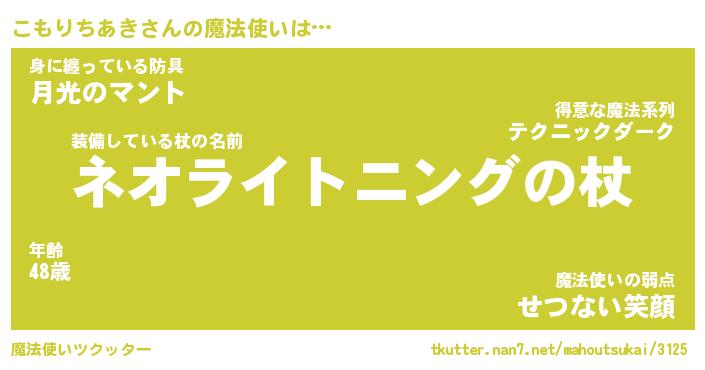 | 伝説のあだ名 | 『不死鳥の傭兵こもりちあき』 |