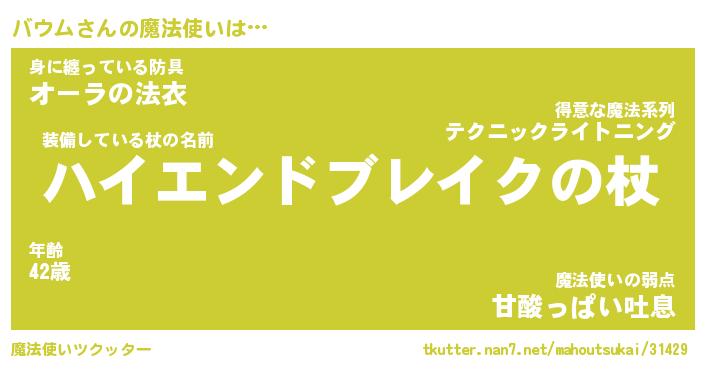 | ヒーロー風カッコイイあだ名 | 『スーパーバウム』『ウルトラバウムマン』 |