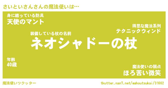 | 男性向けラノベタイトル風あだ名 | 『さいといさんの憂鬱』 |