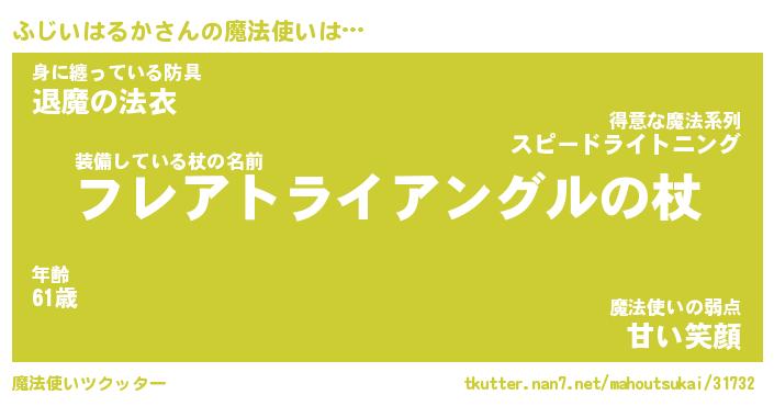 | ヒーロー風カッコイイあだ名 | 『スーパーフジイハルカ』『天弓騎士フジ』 |