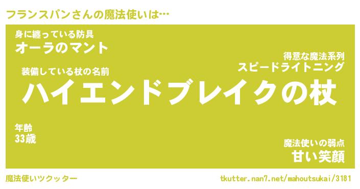 | 男性向けラノベタイトル風あだ名 | 『フランスパンアートオンライン』 |
