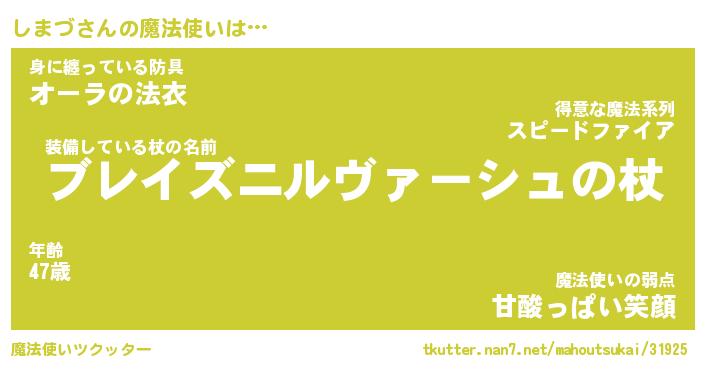 | ファンタジー風あだ名 | 『シマフェル』『エターナルシマヅー』 |