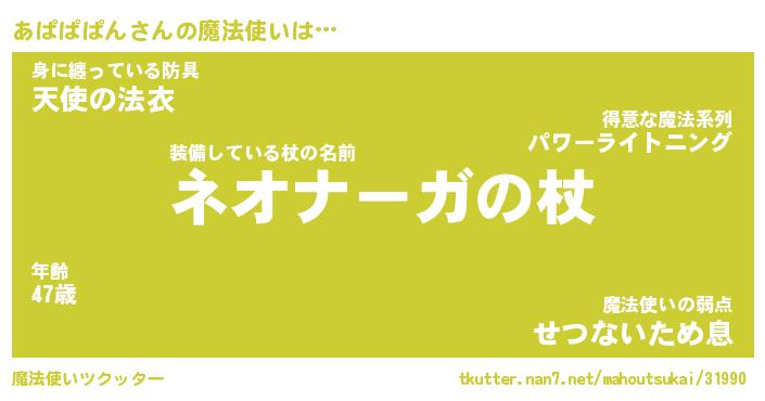 | 欧米人風あだ名 | 『マイケルあぱぱぱん』 |