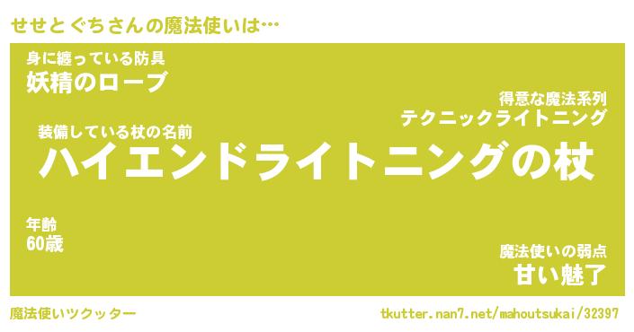 | ファンタジー風あだ名 | 『セセフェル』『エターナルセセトグチー』 |