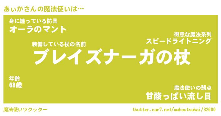 | ファンタジー風あだ名 | 『アィフェル』『エターナルアィカー』 |