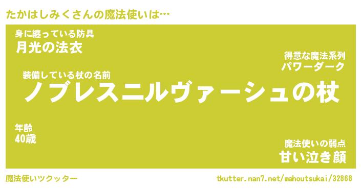 | 伝説のあだ名 | 『封印されしスナイパーたかはしみく』 |
