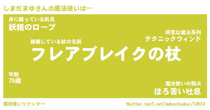 | ファンタジー風あだ名 | 『シマフェル』『エターナルシマダマユー』 |