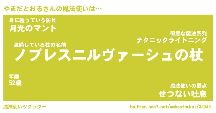 | ヒーロー風カッコイイあだ名 | 『スーパーヤマダトオル』『魔戒騎士ヤマ』 |