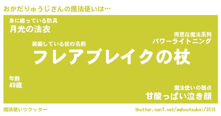 | 男性向けラノベタイトル風あだ名 | 『おかだりゅうじの憂鬱』 |