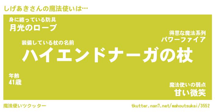 | ファンタジー風あだ名 | 『シゲフェル』『エターナルシゲアキー』 |