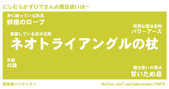 | ファンタジー風あだ名 | 『ニシフェル』『ファントムニシス』 |
