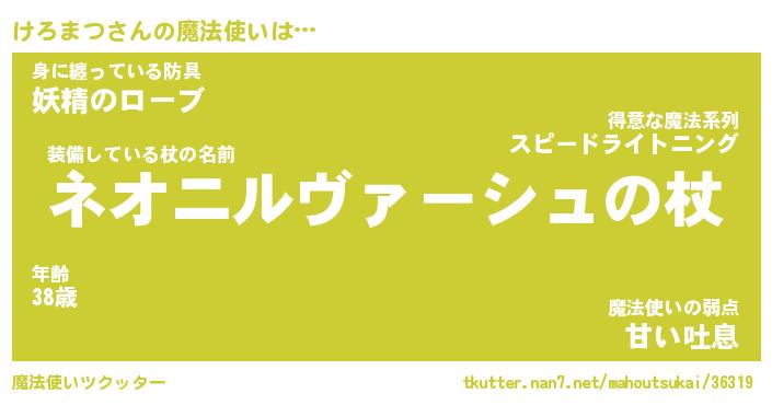 | 欧米人風あだ名 | 『マイケルけろまつ』『ウサインけろまつ』 |