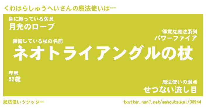| 男性向けラノベタイトル風あだ名 | 『くわはらしゅうへいの憂鬱』 |
