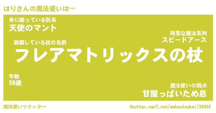 | ファンタジー風あだ名 | 『ハリフェル』『エターナルハリー』 |
