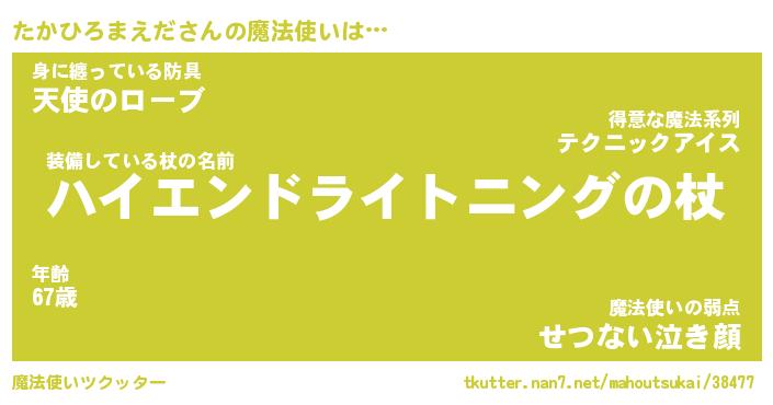 | 伝説のあだ名 | 『封印されし傭兵たかひろまえだ』 |