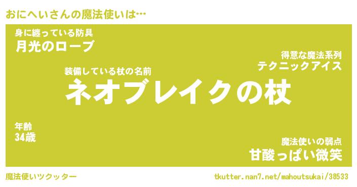 | 男性向けラノベタイトル風あだ名 | 『おにへいの憂鬱』 |