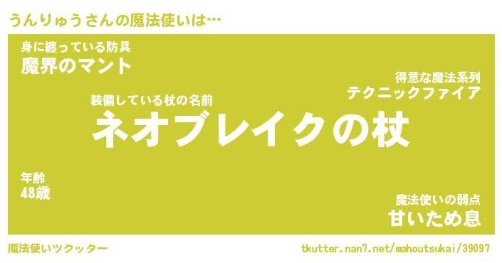 | ファンタジー風あだ名 | 『ウンフェル』『エターナルウンリュウー』 |