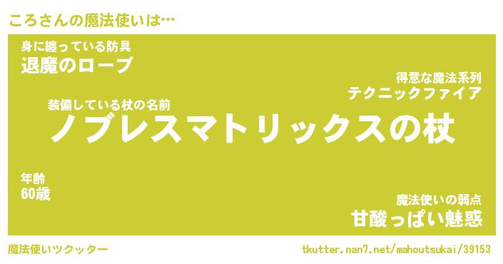 | ファンタジー風あだ名 | 『コロフェル』『エターナルコロー』 |