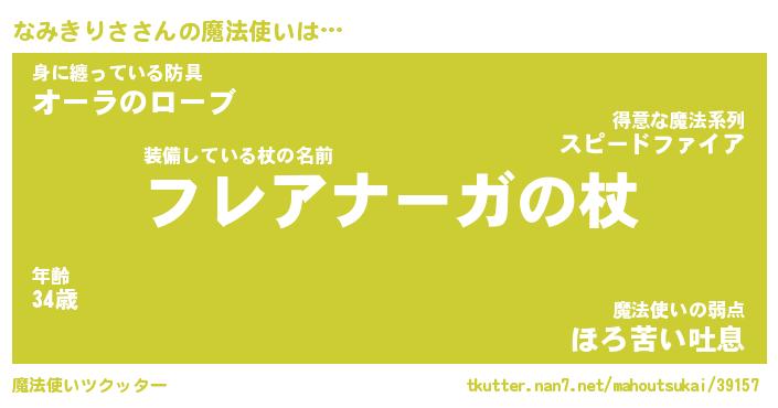 | ファンタジー風あだ名 | 『ナミフェル』『エターナルナミキリサー』 |