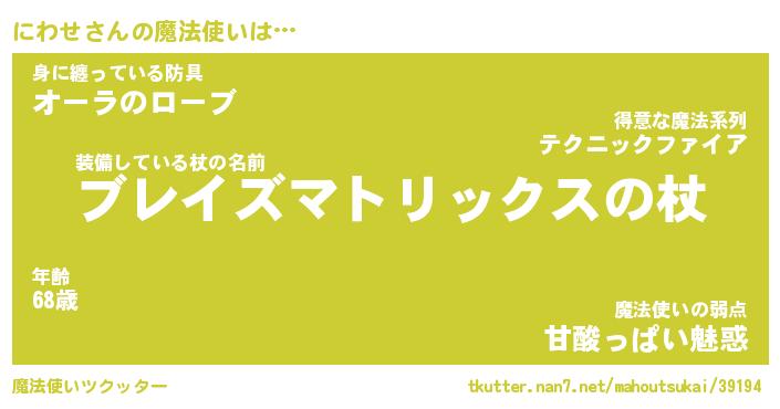 | ファンタジー風あだ名 | 『ニワフェル』『エターナルニワセー』 |