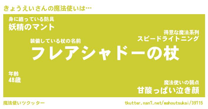 | ヒーロー風カッコイイあだ名 | 『スーパーキョウエイ』『幻影騎士キョ』 |