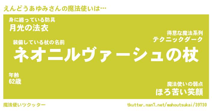 | 肩書あだ名 | 『えんどうあゆみ御曹司』 |