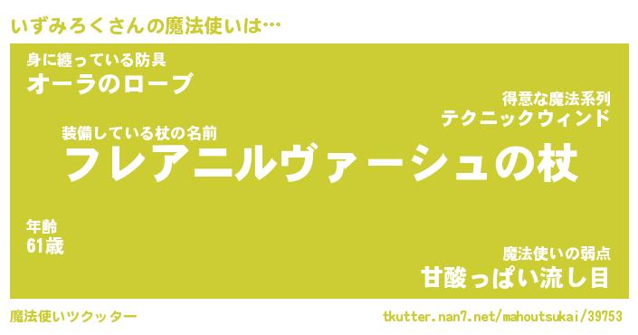 | ファンタジー風あだ名 | 『イズフェル』『エターナルイズミロクー』 |