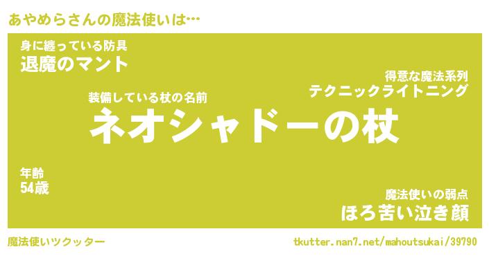 | ファンタジー風あだ名 | 『アヤフェル』『エターナルアヤメラー』 |