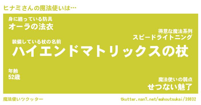 | ポケモン風あだ名 | 『ヒナチュウ』『ヒナミダネ』 |